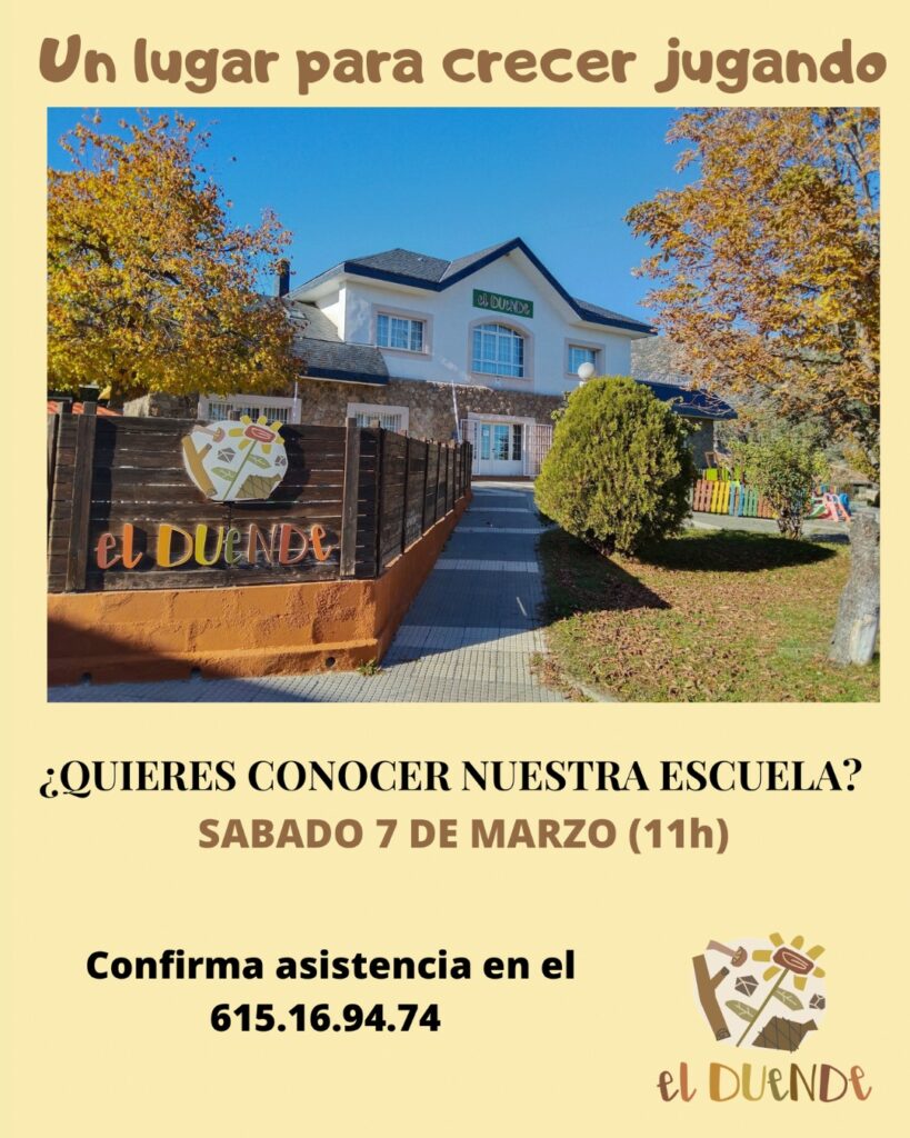 La Escuela Infantil El Duende organiza una Jornada de Puertas Abiertas el sábado 7 de marzo de 2026 a las 11:00 horas. Bajo el lema «un lugar para crecer jugando», el centro invita a las familias a conocer su proyecto educativo, recorrer las instalaciones y charlar con el equipo docente sobre sus valores y el acompañamiento al alumnado.