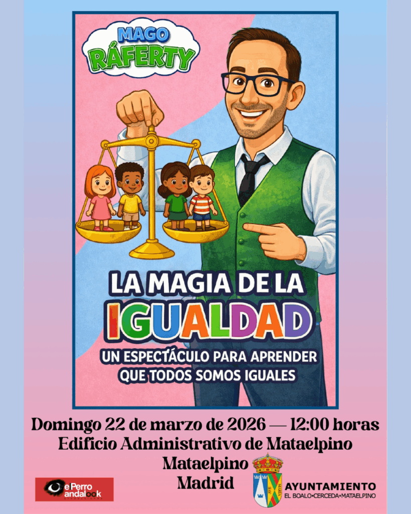 El Edificio Administrativo de Mataelpino se llenará de sorpresas el próximo domingo 22 de marzo con el espectáculo «La Magia de la Igualdad». De la mano del Mago Ráferty, los asistentes disfrutarán a las 12:00 horas de una jornada mágica donde el aprendizaje y la diversión van de la mano para celebrar el Mes de las Mujeres en comunidad.