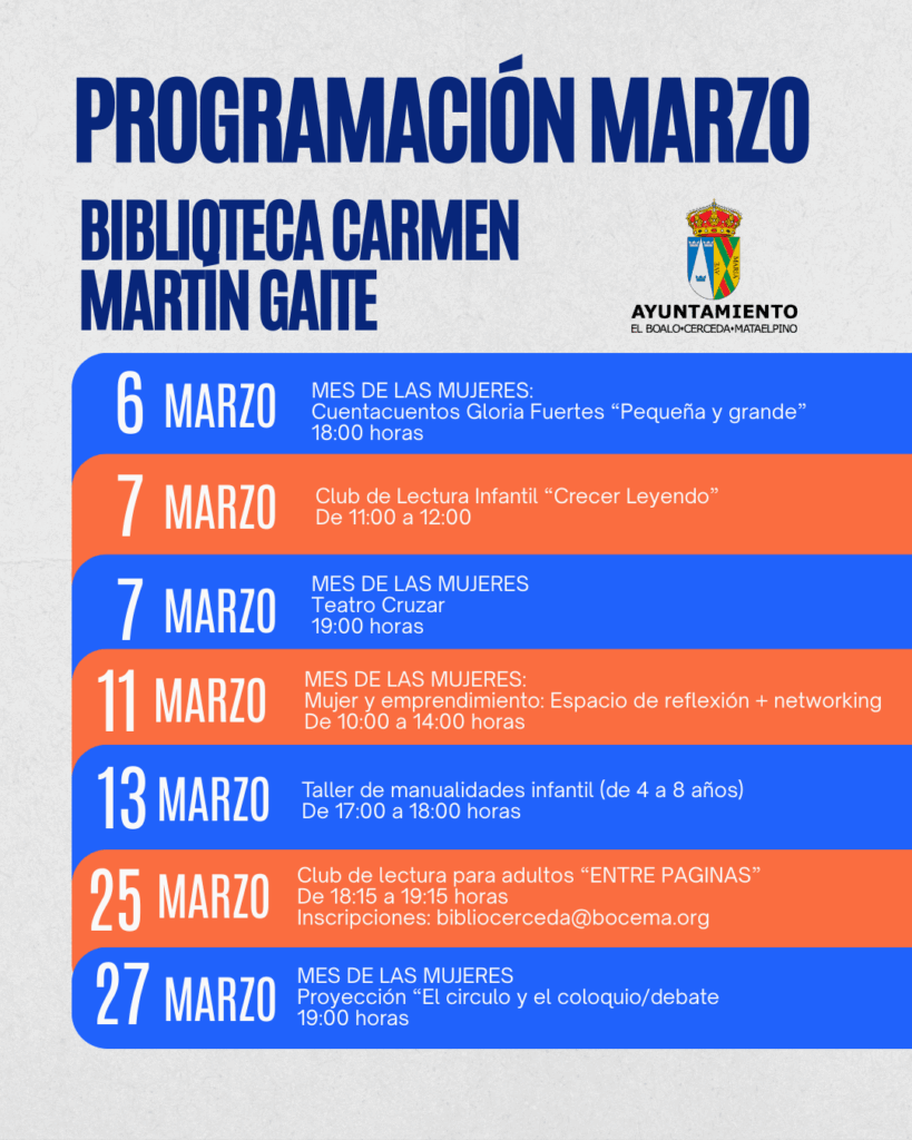 Programación Marzo 2026: Biblioteca Carmen Martín Gaite
