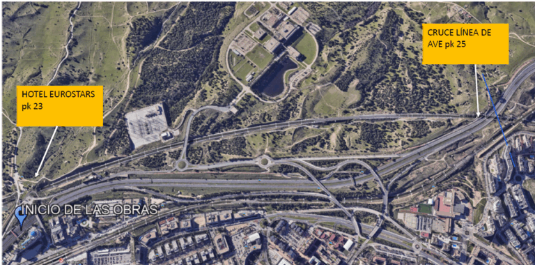 - Tramo 3 (Sentido decreciente): Corte del carril derecho entre el pk 28+100 y el 27+900, iniciándose tras finalizar la actuación anterior.