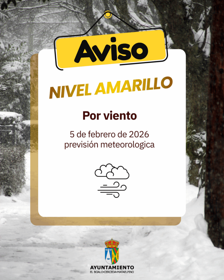 El Ayuntamiento de El Boalo, Cerceda y Mataelpino recuerda a la vecindad extremar las precauciones ante estas condiciones adversas: