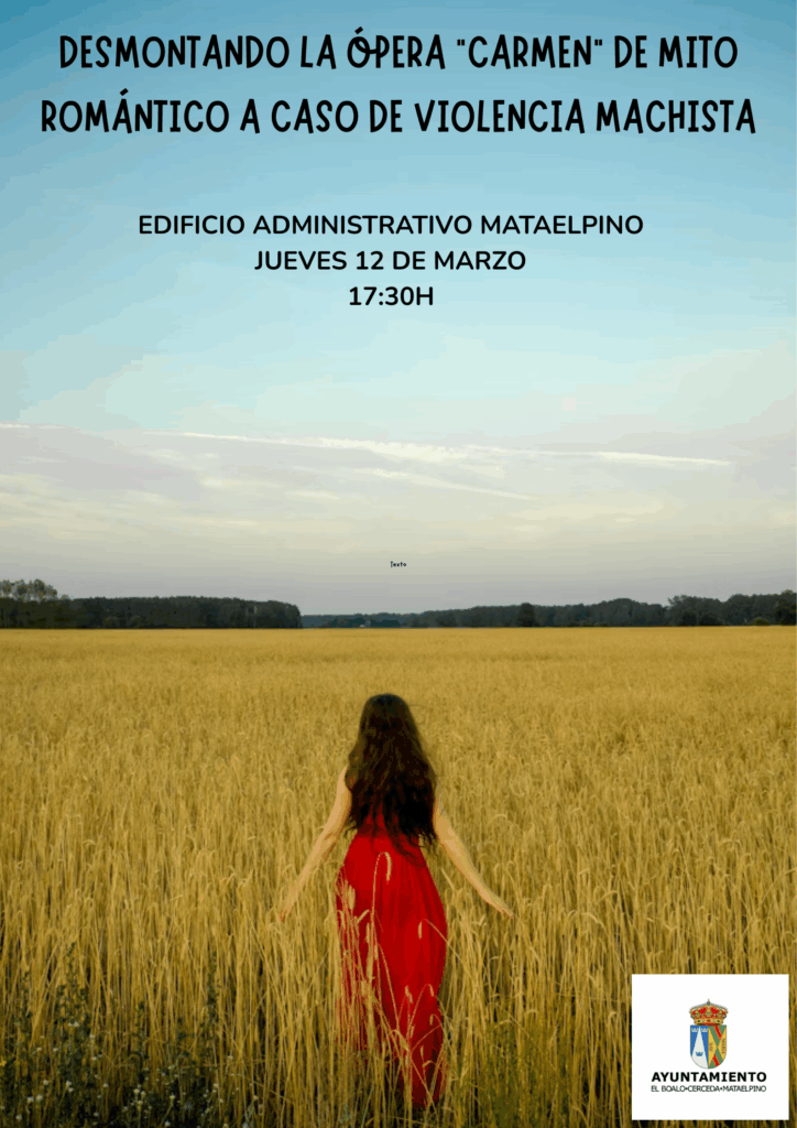 El Edificio Administrativo de Mataelpino acogerá el jueves 12 de marzo a las 17:30 horas la charla «Desmontando la ópera ‘Carmen'». Esta actividad del Mes de las Mujeres propone un espacio de debate para analizar cómo los relatos culturales han perpetuado ciertos mitos y su relación con la violencia de género en la actualidad.