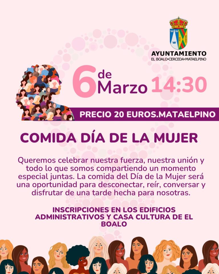Con motivo del 8 de marzo, Día Internacional de la Mujer, el Ayuntamiento organiza un encuentro especial para celebrar nuestra fuerza y unión. Será una tarde diseñada para que todas las vecinas puedan desconectar, conversar y disfrutar juntas en Mataelpino.