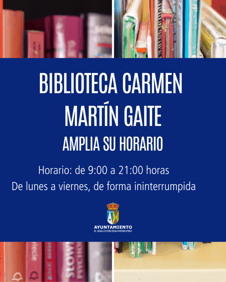 La Biblioteca Municipal Carmen Martín Gaite, ubicada en la calle Teresa Fraile, 29, en Cerceda, ha anunciado una ampliación de su horario de servicio. Esta medida busca facilitar a los vecinos el acceso a la lectura, el estudio y las diversas actividades culturales que ofrece el centro.