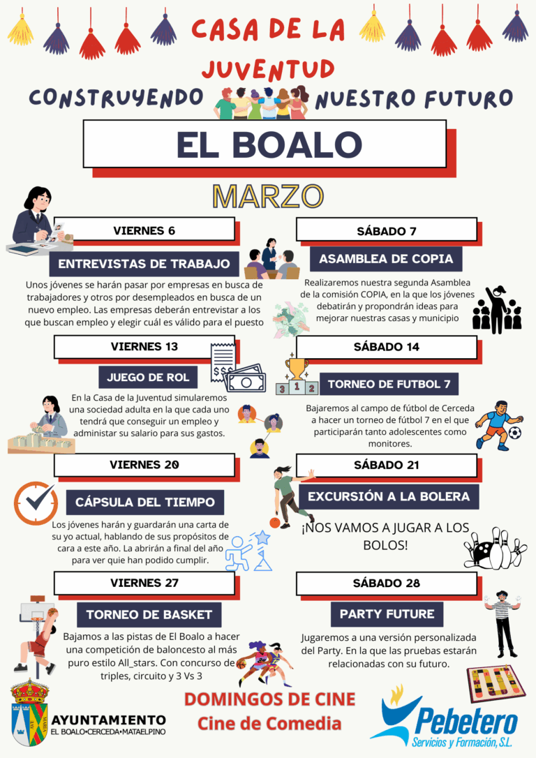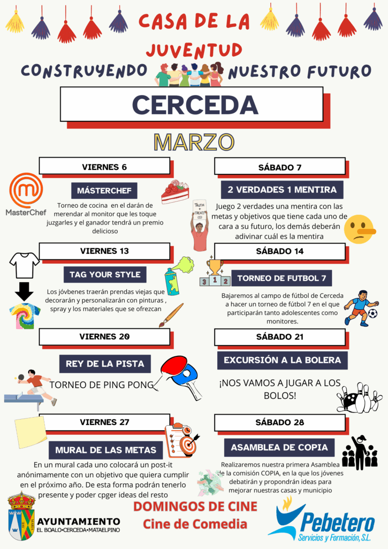 Bajo el lema «Construyendo nuestro futuro», las Casas de la Juventud de El Boalo, Cerceda y Mataelpino presentan una agenda completa para el mes de marzo llena de dinámicas, deportes y reflexión.