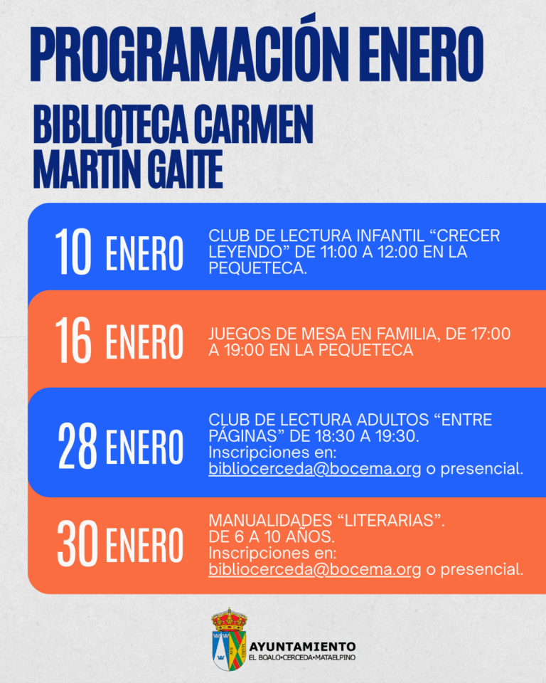 La Biblioteca Municipal Carmen Martín Gaite presenta su variada agenda de actividades para el mes de enero en Cerceda.