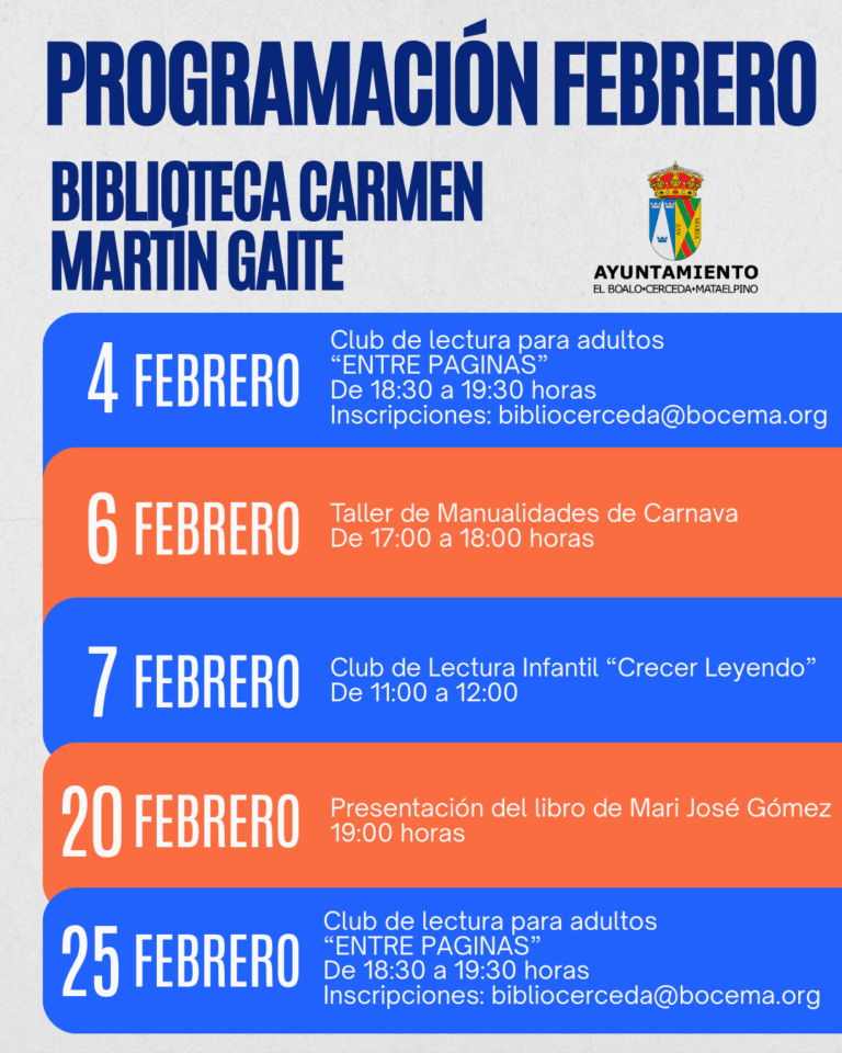 Todas las actividades se realizarán en la Biblioteca Municipal Carmen Martín Gaite: