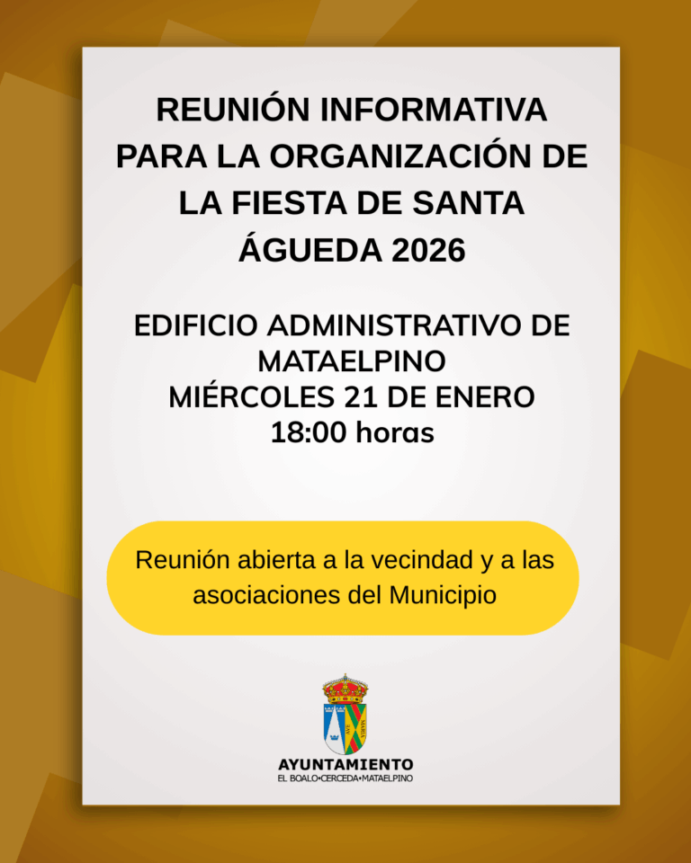 El Ayuntamiento convoca a todas las vecinas y vecinos, así como a las asociaciones del municipio, a una reunión abierta para coordinar los preparativos de la próxima Fiesta de Santa Águeda 2026.